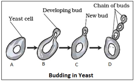 Budding is a method of reproduction in unicellular organisms like yeast and hydra. In this method a bud like projection is formed on the body of the organism. The bud then develops into a new individual. It then separates from the parent and forms an independent individual.