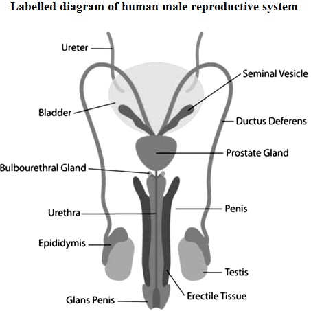 a. Testicles (testes): A pair of oval-shaped organ masked in a pouch called scrotum. Testes are responsible for the production of the sperms and male hormone, testosterone.