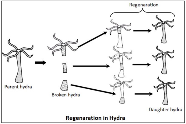Regeneration is a method of reproduction in which a part of the body of an organism if cut or broken, can develop into a new individual.